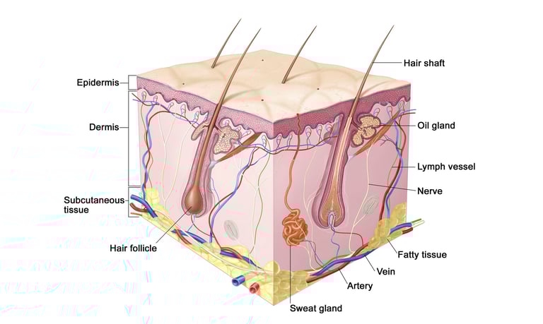 The follicle extends deep into your scalp, reaching down to the subcutaneous fat layer. At its base sits the dermal papilla—a cluster of specialized cells that acts as the control center for hair production. These cells communicate with the hair matrix above them, where rapid cell division creates the hair shaft you eventually see.